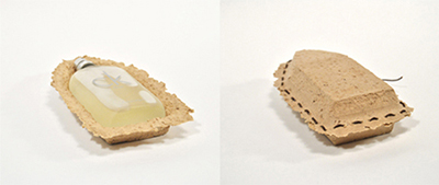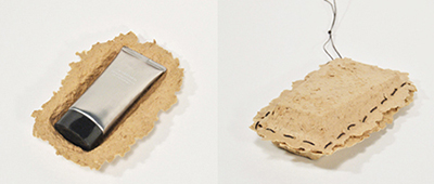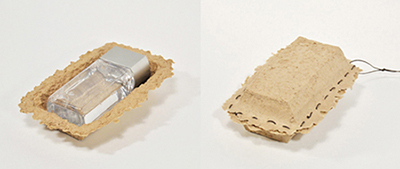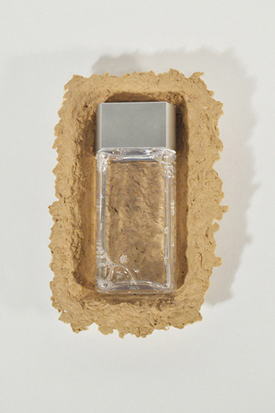 This project is also a critical metaphor: The packaging made out of paper pulp is rough and imperfect just like human skin, and just like human skin it will disappear and return to earth.